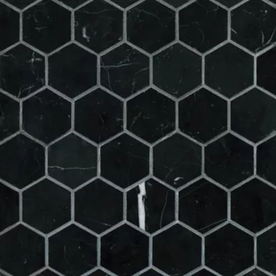 Black Marquina Polished Marble Hex Mosaic Wall and Floor Tile - 2 in.