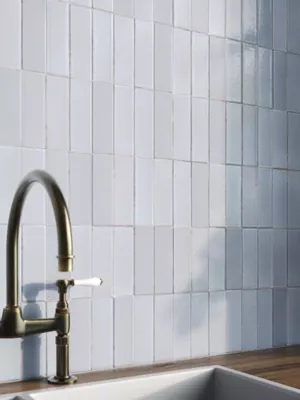 Zellige Light Grey Gloss Ceramic Floor and Wall Tile - 2 x 6 in.